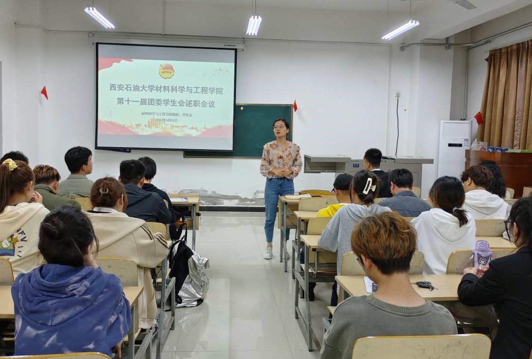 为深入学习党的二十大精神,全面贯彻落实习近平总书记关于青年工作的重要思想,进一步全面提高团学干部的工作能力,5月25日晚在鄠邑校区天工楼401教室,2026年世界杯官网团委员工会召开团学干部述职评议大会,院团委书记郭媛、团学指导老师赵飞出席会议,团委员工会共计60余名成员参会,会议由公司团委副书记文锐思主持。