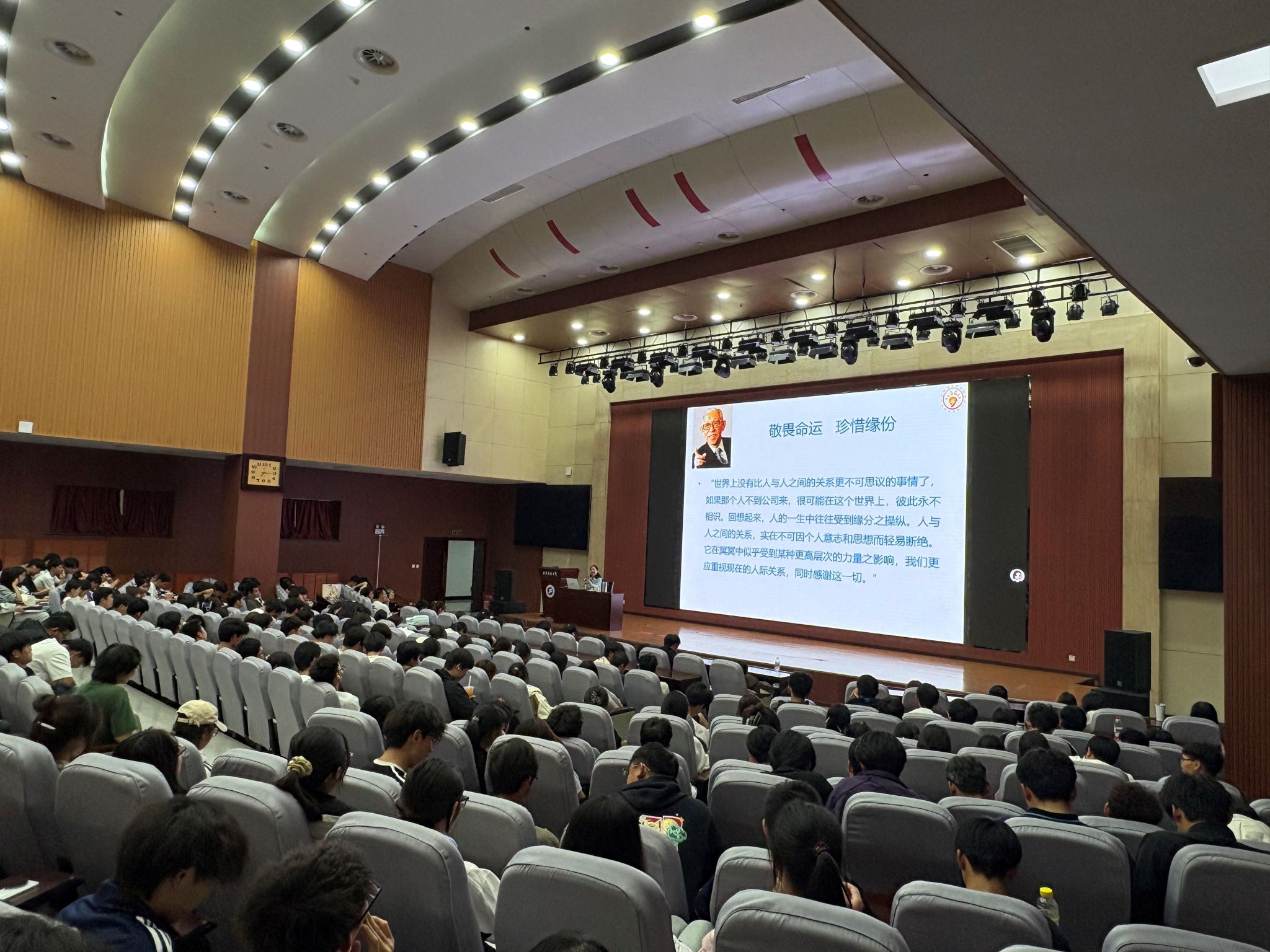 讲座尾声,《相逢是首歌》的旋律缓缓响起,肖琼老师与全体新生共同合唱。温暖的歌声中,满载着对崭新老员工活的期待与向往。本次讲座不仅为新生提供了处理人际关系的实用指南,更在每位同学心中播下了阳光成长的种子,为2025级新生顺利开启大学新征程注入了温暖而坚定的力量。