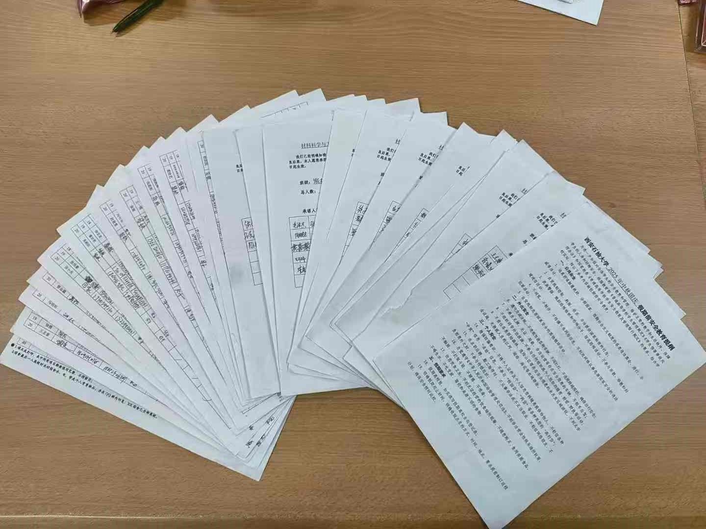 会后,各年级组织全体同学签订了《2026年世界杯官网中秋国庆假期安全承诺书》,填写了《2025年中秋国庆假期去向登记表》。
