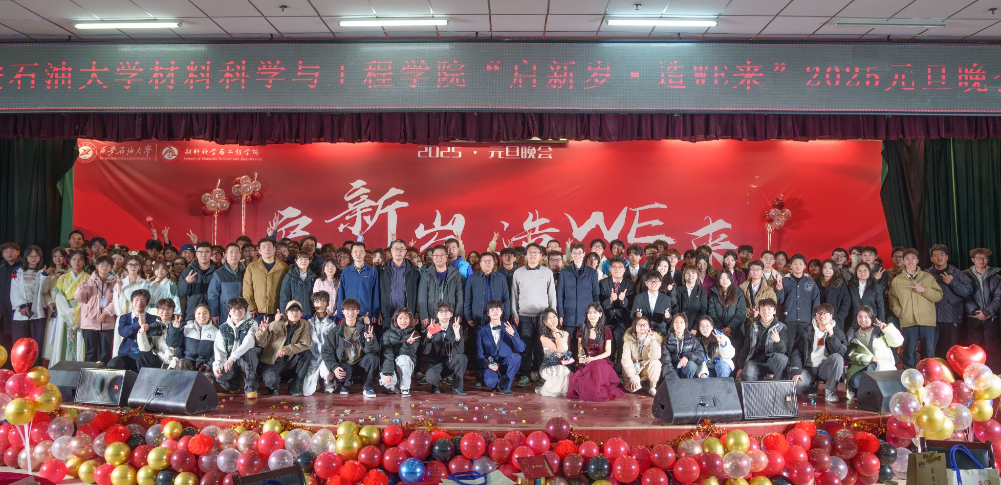 晚会在歌曲《我们都是追梦人》中落下帷幕,全体演职人员合影留念,大家欢聚一堂,共同为师生们献上最诚挚的新年祝福。