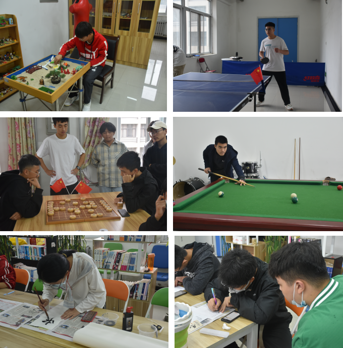 10月2日至10月6日,公司组织留校员工进行了乒乓球比赛、台球比赛、硬笔书法大赛、象棋比赛、五子棋比赛、模拟沙盘等文体活动。通过各种比赛,让更多同学走出宿舍、走进操场,增强体育锻炼和团队协作意识,增进师生之间的交流和各民族同学之间的友谊,营造了欢乐温馨、积极向上的双节氛围。
