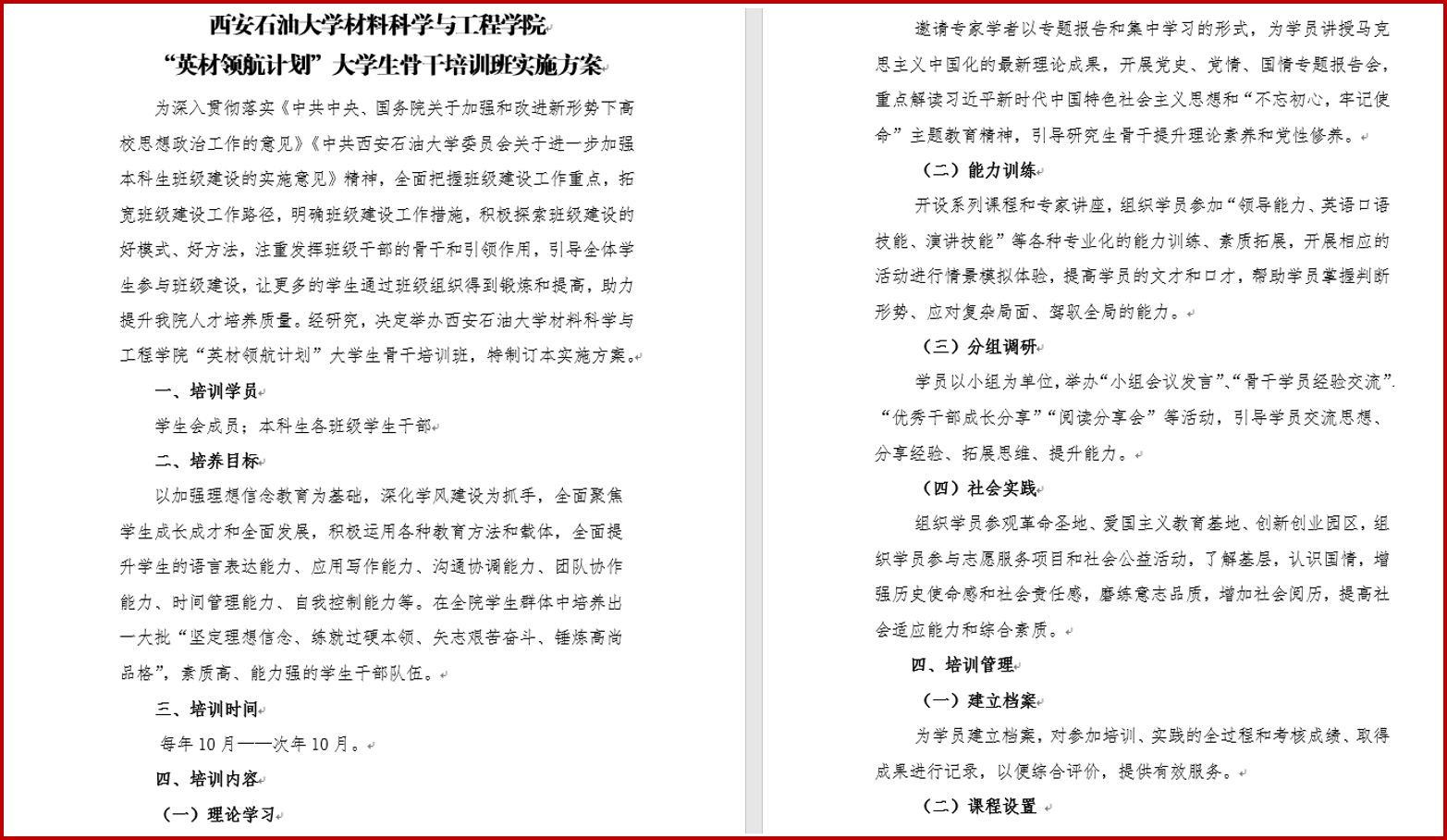 班级建设·工作创新 【“英材领航计划”老员工骨干培训班】从2021级本科生开始,公司坚持以加强理想信念教育为基础,深化班风学风建设,全面聚焦员工成长成才和全面发展,积极运用各种教育方法和载体,全面提升员工的语言表达能力、应用写作能力、沟通协调能力、团队协作能力、时间管理能力、自我控制能力。旨在从低年级开始培养出一大批“坚定理想信念、练就过硬本领、矢志艰苦奋斗、锤炼高尚品格”,素质高、能力强的员工干部队伍。