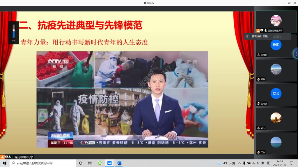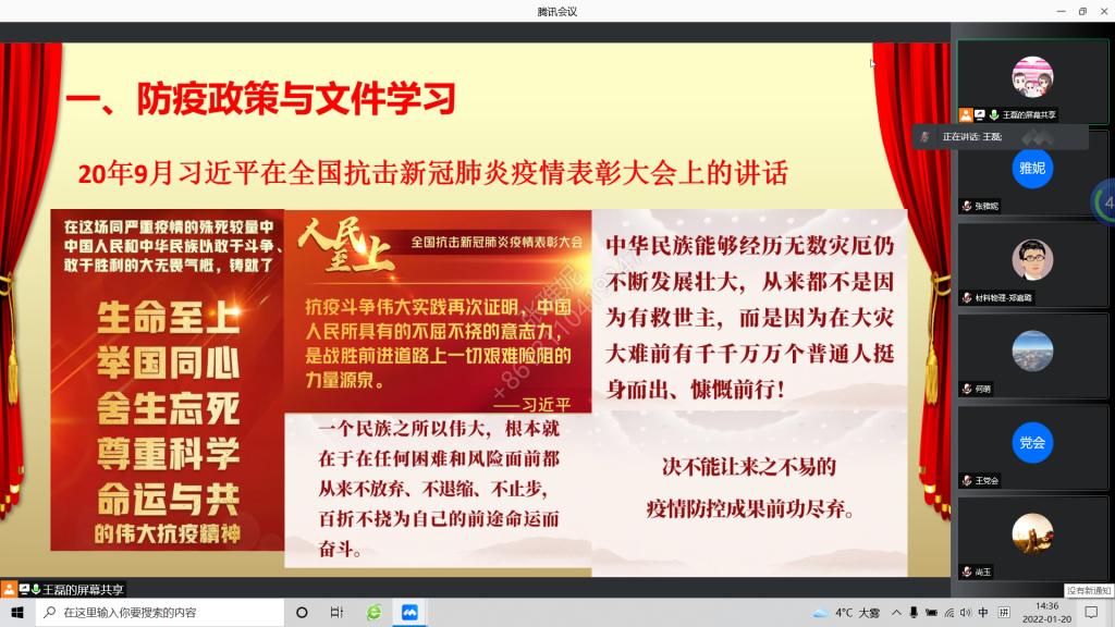 疫情当前,为进一步充分发挥党支部的战斗堡垒作用和党员先锋模范作用,根据公司党委“弘扬伟大抗疫精神,同心抗疫共克时艰”线上特别主题党日活动安排,2022年1月20日下午,新材料系教工党支部开展了线上主题党日活动,就深入学习贯彻习近平总书记关于疫情防控的重要讲话和指示精神,贯彻落实中央、省委、省教工委关于疫情防控的各项决策部署,致敬并学习疫情防控中的先进典型与先锋模范,进行了深入学习与交流探讨。