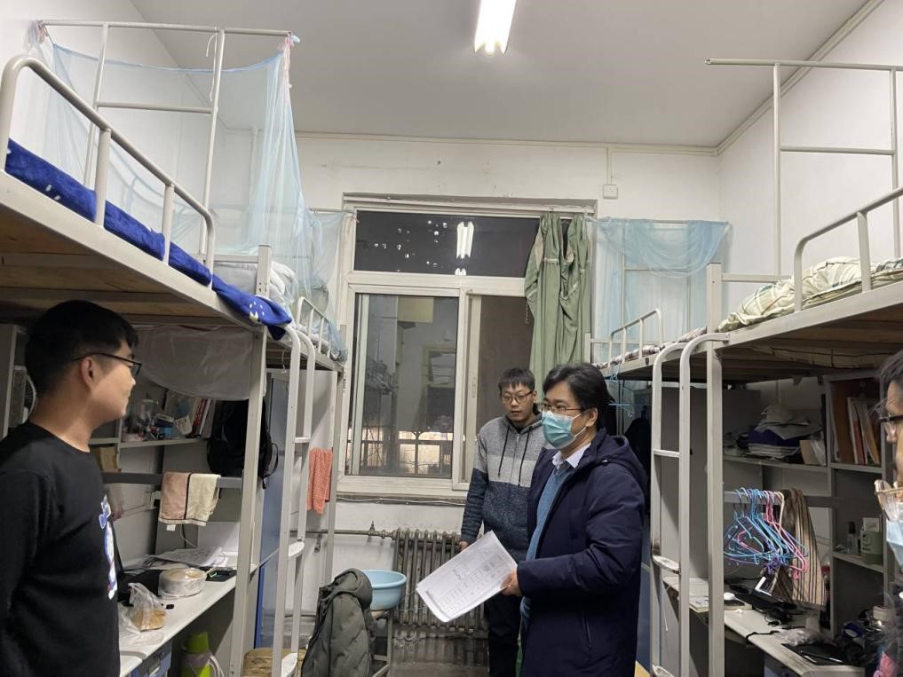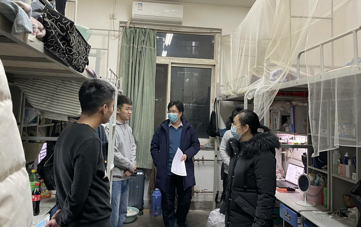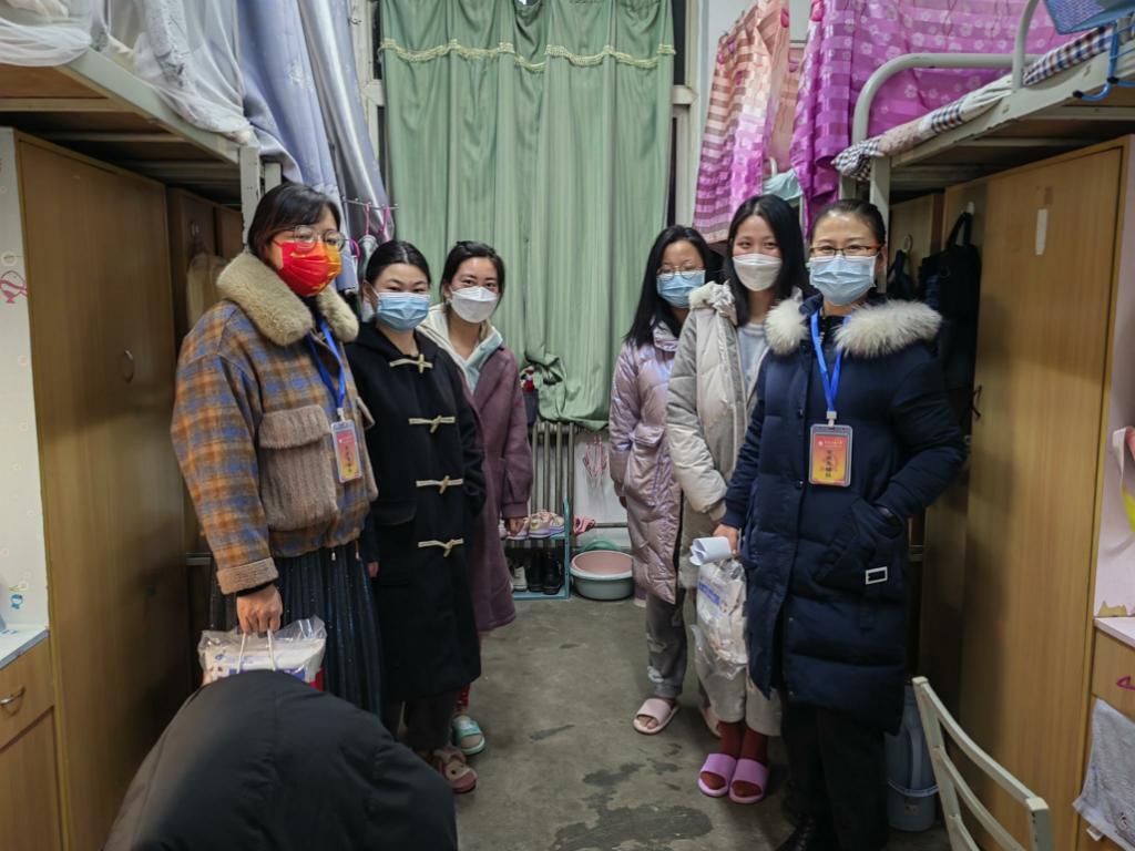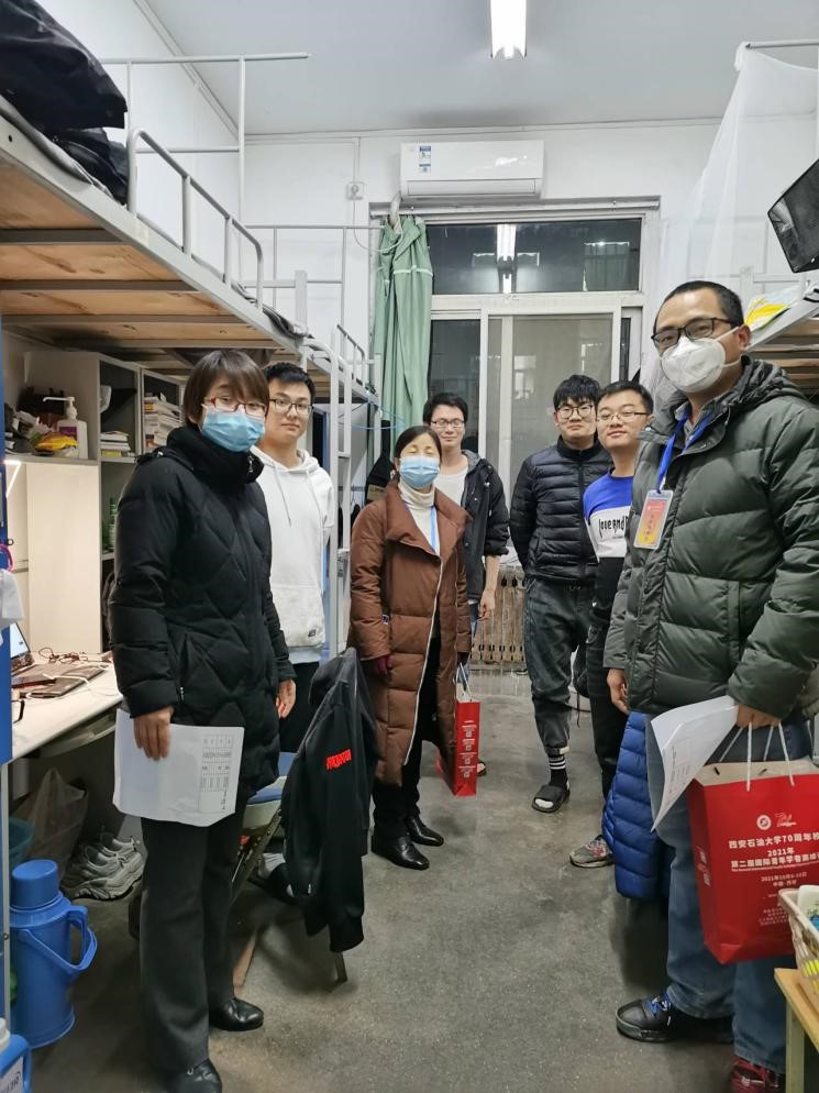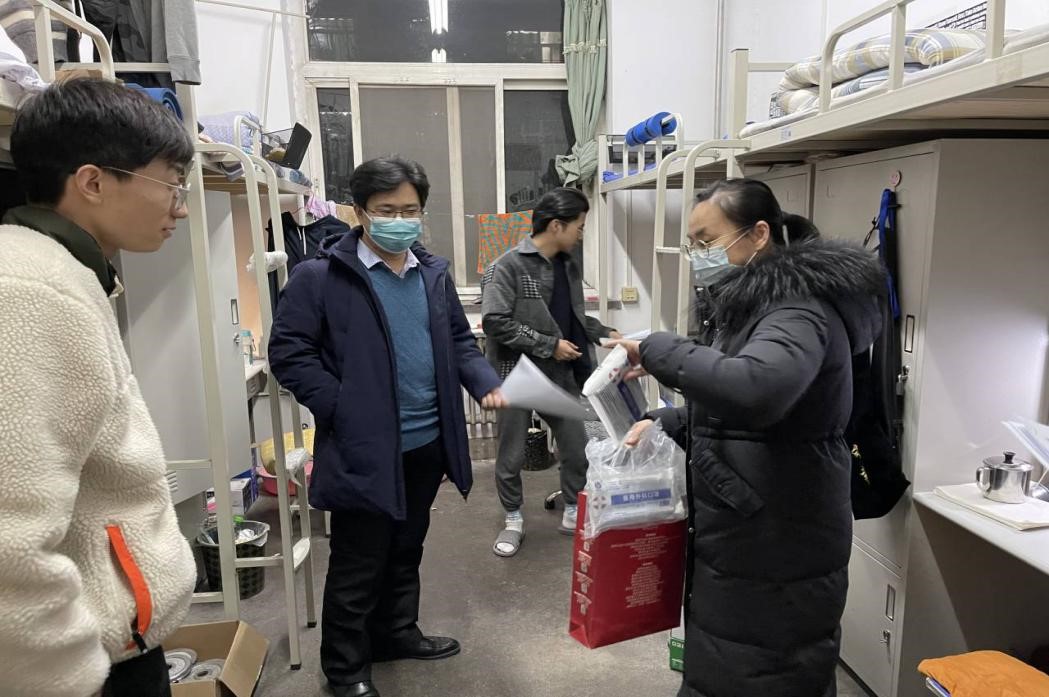 公司党委书记宋海洋带领公司党员先锋队老师们分三组到雁塔校区1、2、3号楼看望研究生并发放防疫口罩。