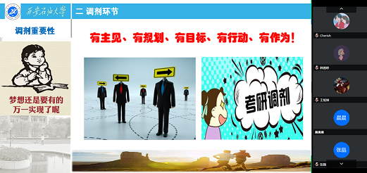 毕业班辅导员宋二鹏老师也对同学们备战研究生复试过程中的注意事项进行了提醒和建议,同时对准备复试期间大家所需要的各种材料寄送工作做了说明。
