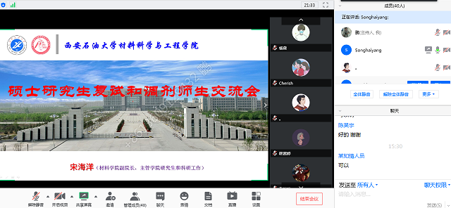 接着,宋海洋老师对同学们更好地准备研究生调剂提出了颇具针对性和指导性的建议。他还从硕士授权点、学科研究方向、团队队伍和研究生育人育才成效等几个方面简要介绍了公司研究生的招生及培养情况。