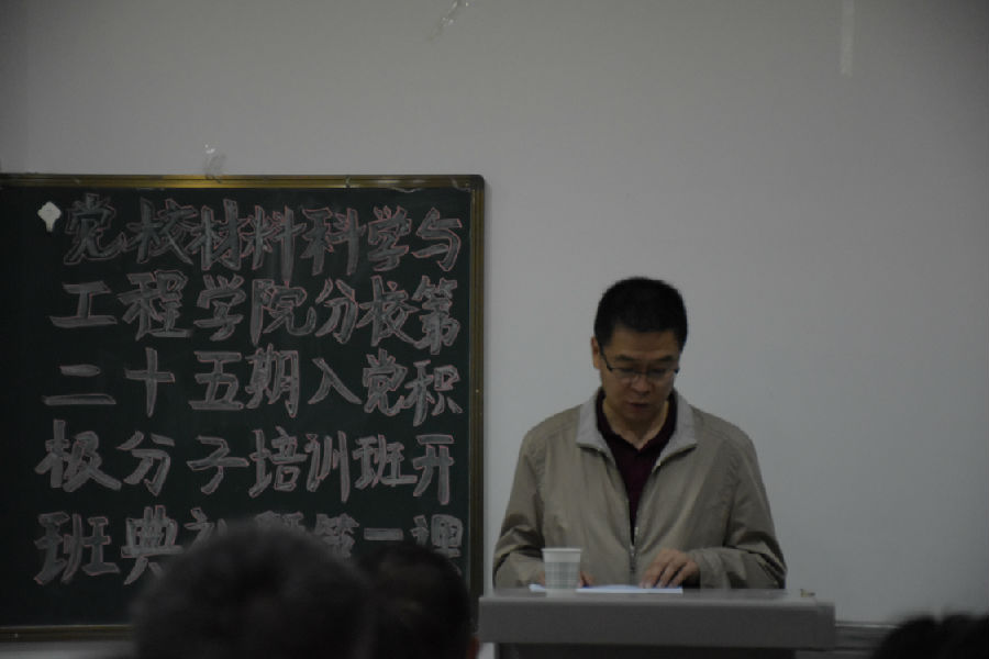 班仪式在雄壮的国歌声中拉开帷幕。马文庆老师为本期入党积极分子培训开班致词,对全体学员的提出了要求和希望,要认真对待培训,加强自身学习,要强化政治追求,坚定理想信念,要不断努力学习党的基础知识,用先进的理论武装自己的头脑,希望同学珍惜本次学习,将它作为新的起点,不断充实、提高和完善自己,争取早日在思想上、组织上加入到党的行列中来。仪式上,宋二鹏老师宣读了本次培训班的考核办法和纪律要求。