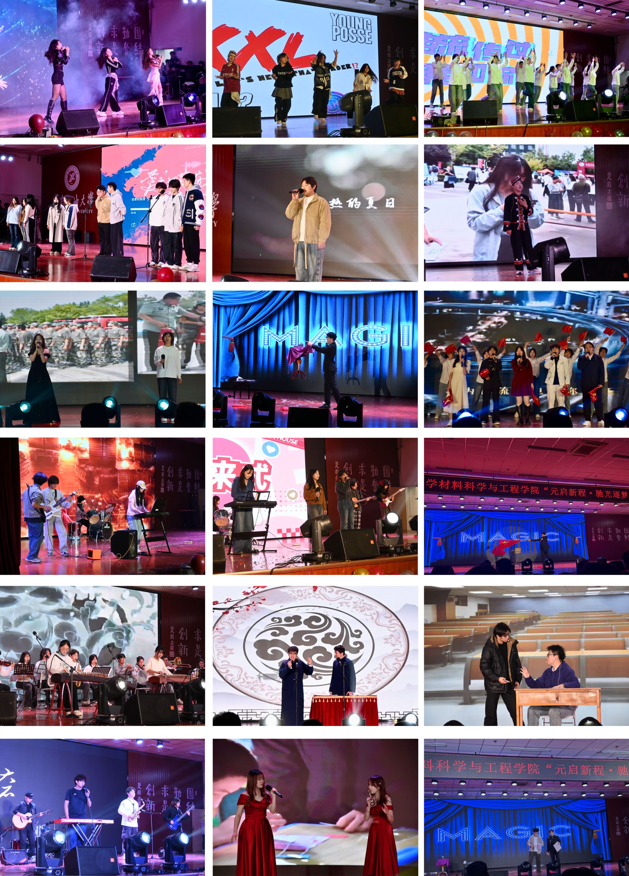 晚会围绕“元启新程 驰光逐梦”主题,将青春活力与奋进姿态贯穿始终。舞蹈《Focus》《Golden》《XXL》《你要跳舞吗》节奏强劲、朝气蓬勃,瞬间点燃全场热情;歌曲《爱要坦荡荡》《我的美丽》《我爱你中国》旋律动人、情感真挚,赢得阵阵掌声;乐队演绎《曹操》《云宫迅音》《大石碎胸口》《我的未来式》风格多样、演奏精彩,带来别具一格的视听享受;相声《我是老员工》与小品《考场“诚”风记》妙趣横生、笑声不断,将晚会气氛推向高潮。整场演出精彩连连,欢呼与掌声交织,暖意洋溢全场。