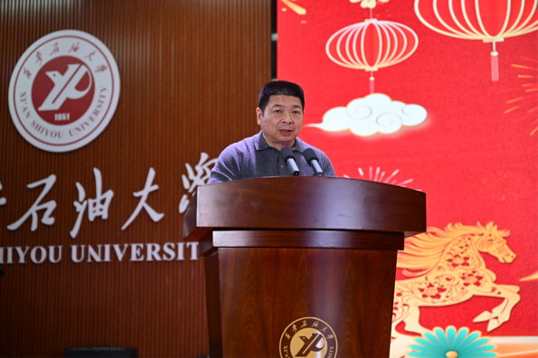 耿岭代表公司向出席晚会的各位领导、嘉宾、师生致以诚挚问候与热烈欢迎。他从党团建设、团队队伍、学科发展、教学科研、人才培养五个方面系统回顾了公司2025年取得的各项成绩,并向全体同学提出三点期望:一要坚定理想、脚踏实地,在知行合一中锤炼真才实学;二要全面发展、锤炼能力,在成长道路上奋力奔跑;三要珍惜光阴、奋发有为,以昂扬姿态迎接未来挑战。