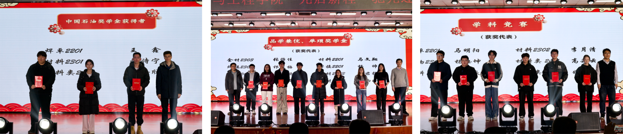 颁奖环节中,公司领导老师为国家奖学金、国家励志奖学金、中国石油奖学金、品学兼优奖学金、单项奖学金及省部级以上学科竞赛获奖者代表颁发了荣誉证书。