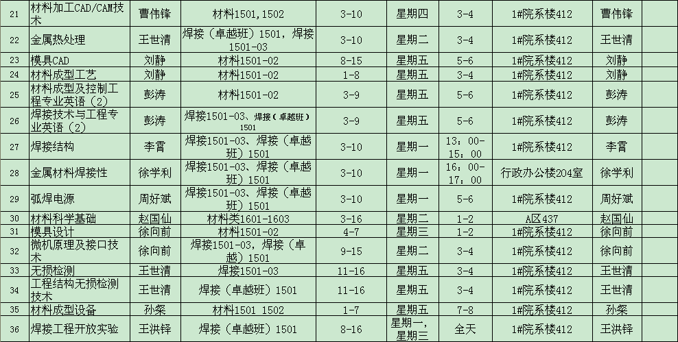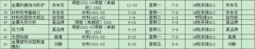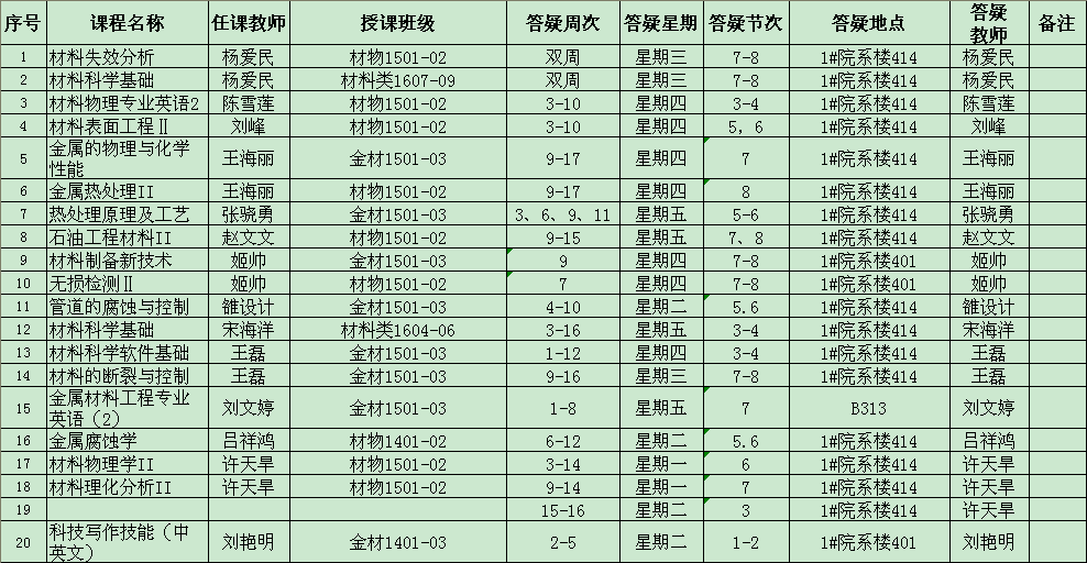 2017-2018学年第二学期课程答疑安排