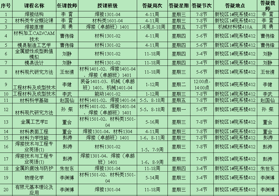 2016—2017学年第一学期课程答疑统计
