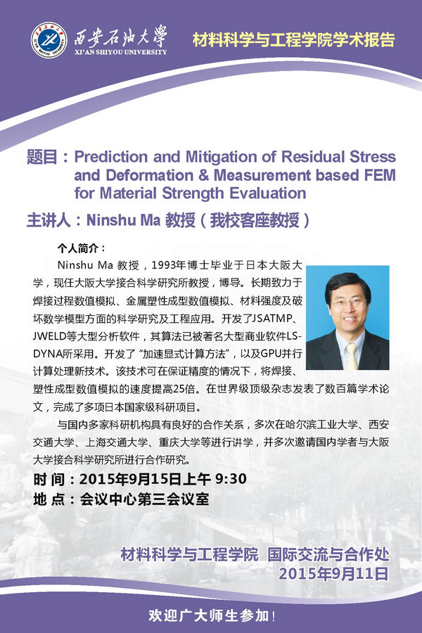 日本大阪大学Ninshu Ma教授学术报告