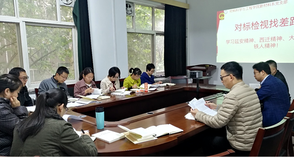 2019.10.1810月15日下午,新材料系教工党支部全体党员在雁塔校区4号实验楼311会议室开展了“不忘初心、牢记使命”主题教育第三次集中学习研讨暨“对标检视找差距”主题党日活动。