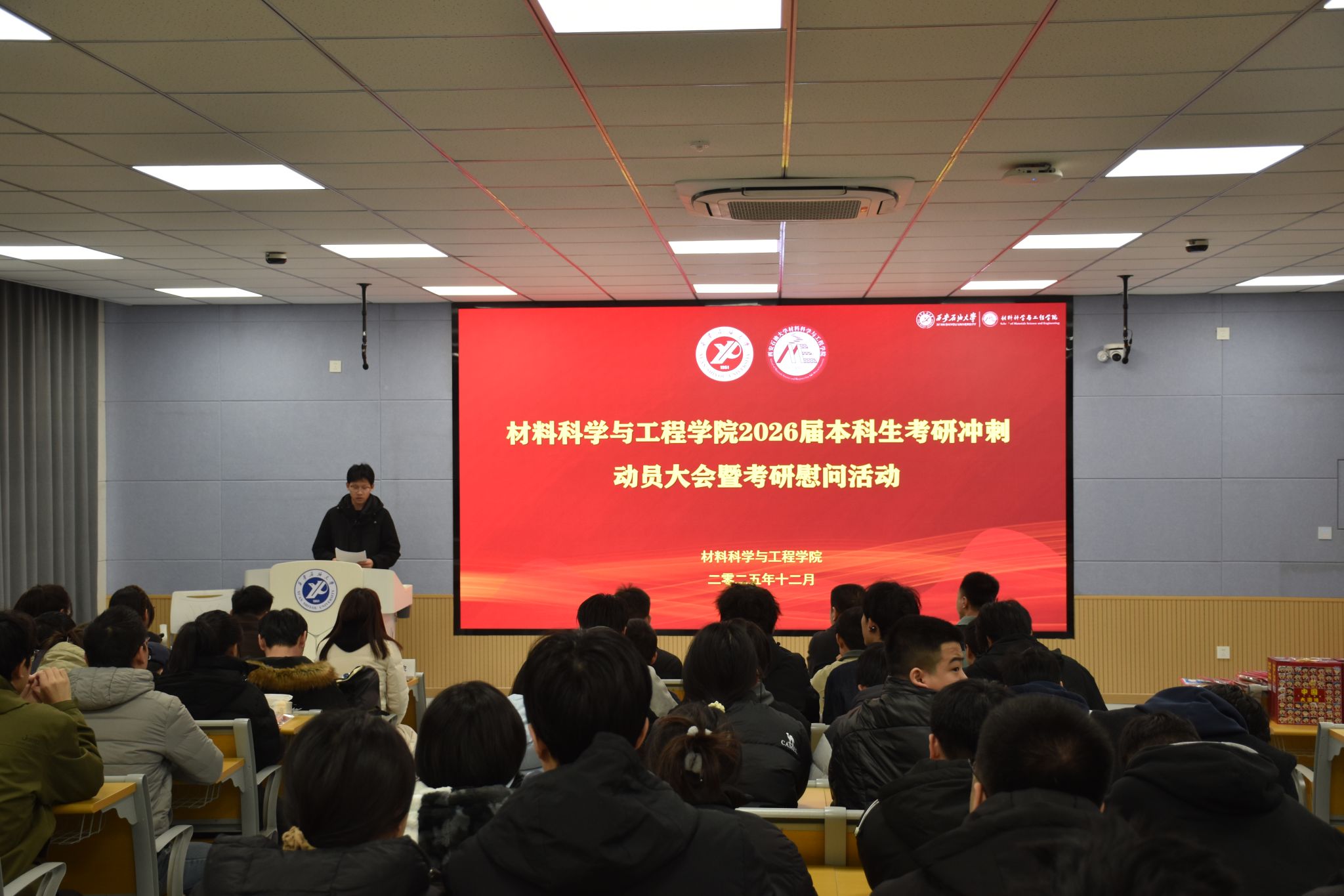 2025.12.07为深入贯彻“以生为本”育人理念,切实关怀考研学子备考状态,缓解备考压力,增强迎考信心,12月4日,2026年世界杯官网在鄠邑校区博览楼110教室举行2026届本科生考研冲刺动员大会暨考研慰问活动。公司党委书记耿岭,党委副书记屈敏佳,各年级辅导员和2026届考研员工100余人参加活动。活动由公司员工工作办公室副主任赵飞主持。屈敏佳在动员讲话中,向全体考研学子致以亲切问候与诚挚鼓励,并对同学们在备考过程中展现出的坚韧...